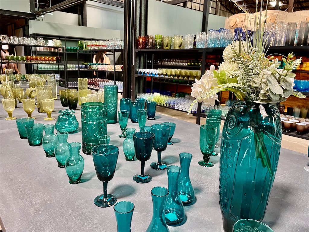 あてくしのお目当ては、色の濃い皿と、デザイン性あるグラス。